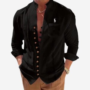 The Ralph Lauren – Casual Button-Up Shirt brings contemporary style to classic menswear. Its sleek Mandarin collar and tailored cut offer a refined yet relaxed look. Perfect for both casual outings and elevated occasions.