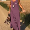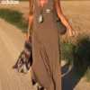 Its sleeveless design and elegant length make it an ideal dress for any occasion. Wear it with sandals for a casual look or accessorize it for a more sophisticated outfit. A must-have for your summer wardrobe!