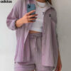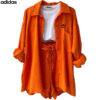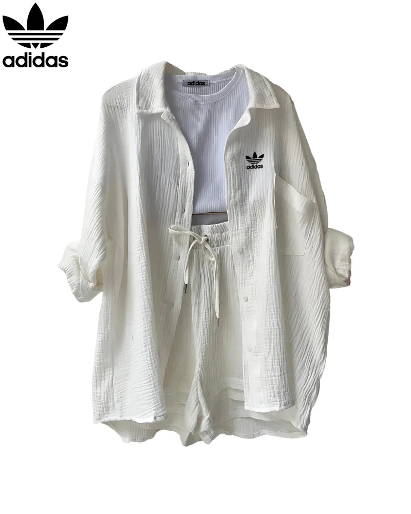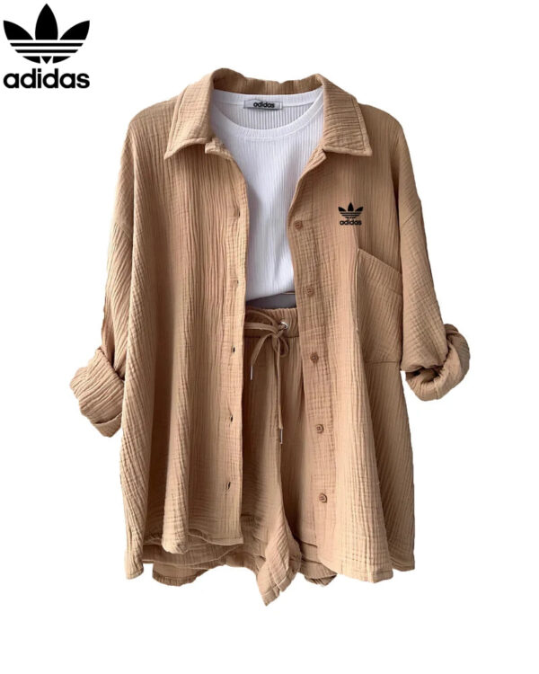Designed for casual days and effortless coordination, this Adidas – New Elegant Set features a relaxed button-down shirt paired with drawstring high-waisted shorts—perfect for lounging, light outings, or vacation-ready styling.