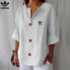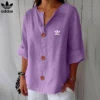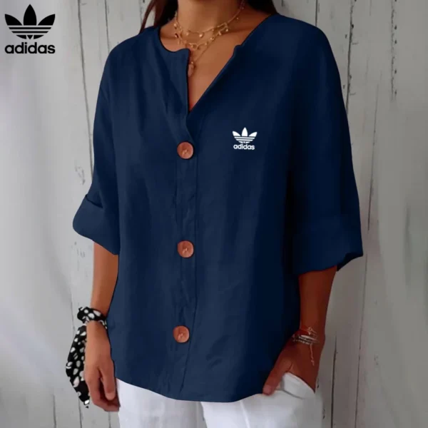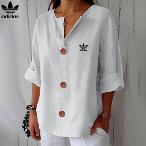 Redefine your everyday look with this effortlessly Adidas – New Linen Blouse, made for women who crave both comfort and sophistication. With its relaxed cut, soft flow, and charming wood-effect buttons, this piece offers a timeless, minimalist style that blends seamlessly into any wardrobe.