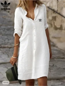 The Adidas – New Shirt Dress combines casual charm with the iconic sporty touch of the brand. Its relaxed yet flattering cut makes it perfect for those who value both comfort and style, while the button-down design adds a hint of sophistication.