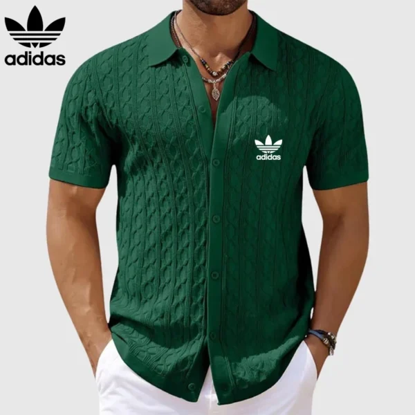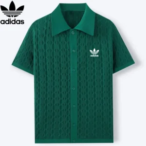 This shirt stands out with its intricate fabric pattern that elevates its overall look. The carefully designed texture not only adds depth and dimension but also enhances breathability and comfort. Every detail, from the stitching to the button placement, reflects Adidas’s commitment to quality and style.
